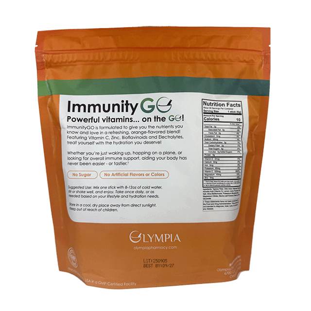 Clean, convenient, and travel-ready, ImmunityGO sticks are a sugar-free, vegan-friendly way to support hydration and immunity on the go. Naturally flavored and formulated without artificial colors or sweeteners, each stick delivers targeted wellness benefits inspired by Olympia’s trusted line of IV kits. Pack of 30 sticks; available in three delicious flavors.